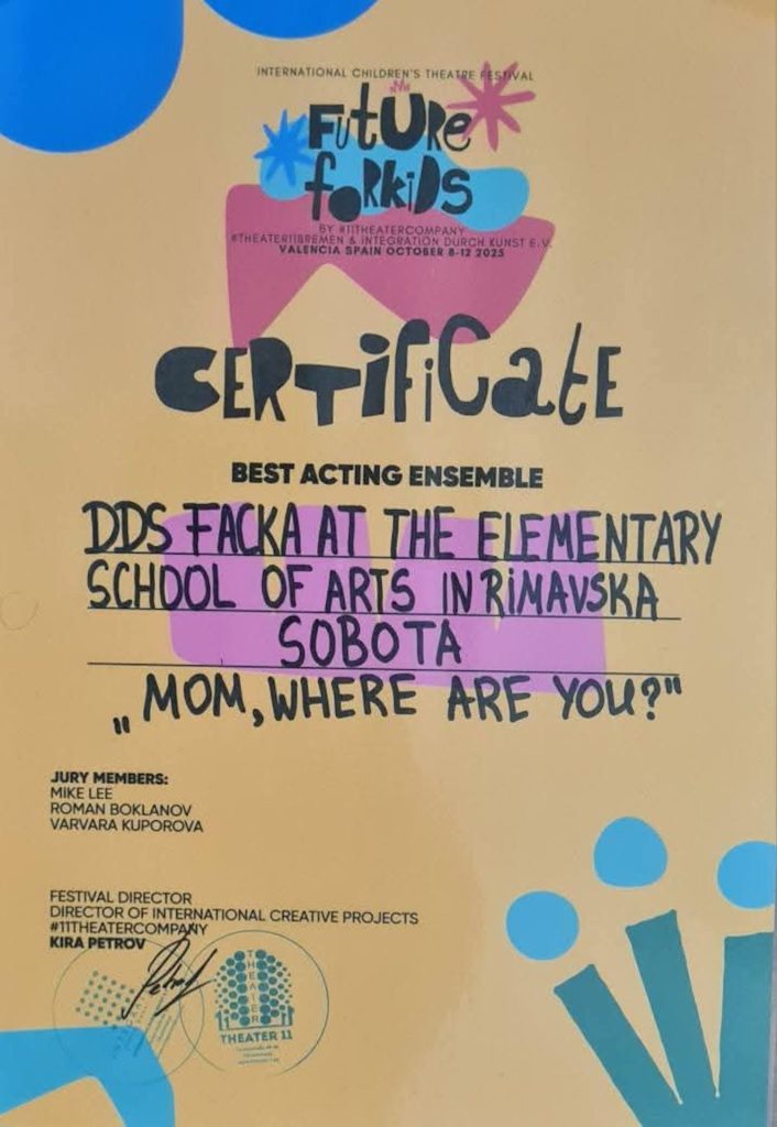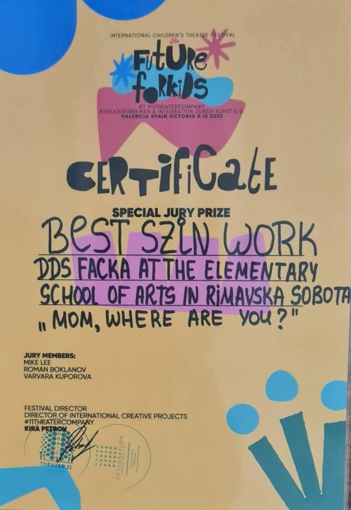 Detský divadelný súbor Facka pri Základnej umeleckej škole v Rimavskej Sobote sa 8. – 12. októbra 2025 zúčastnil na finále 9. ročníka medzinárodného detského divadelného festivalu Future for Kids v španielskej Valencii.